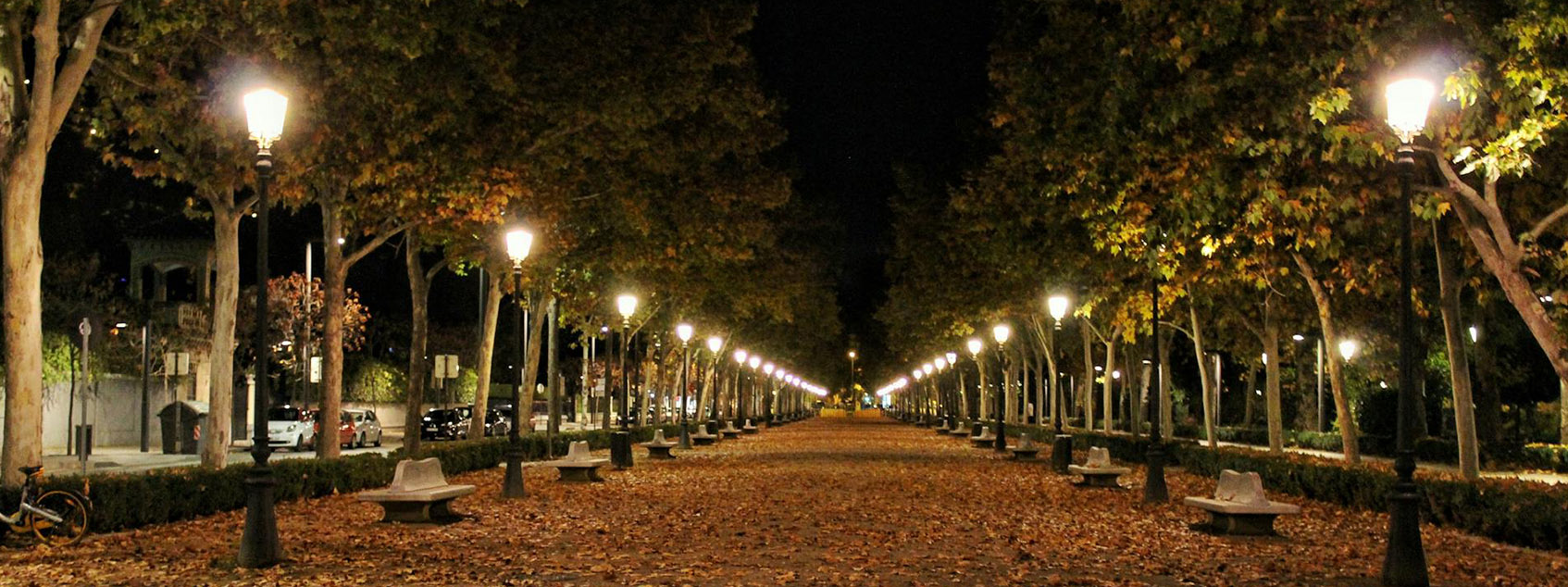 Placed at ground level to shine upward, it creates dramatic effects on facades, tall trees, or textured walls.